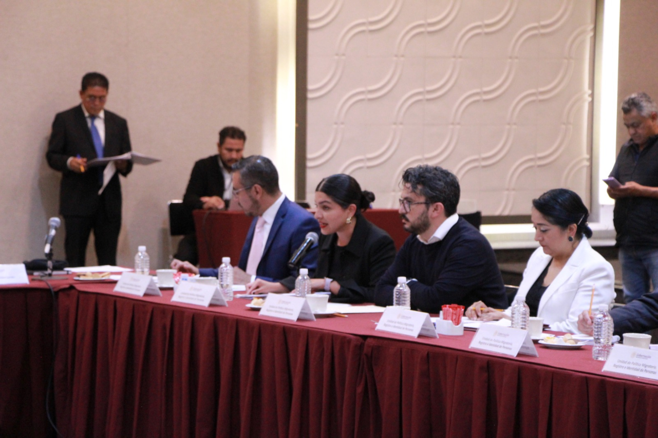 En la Segunda Sesión Ordinaria 2025, la Unidad de Política Migratoria, Registro e Identidad de Personas presentó las acciones sobre la Estrategia México te Abraza; lo relativo a las actividades de los Grupos de Trabajo de a) Atención a mexicanas y mexicanos en Estados Unidos, en cual el Registro Nacional de Población e Identidad expuso los avances para la publicación de los Lineamientos para acreditar la autenticidad de los certificados de nacimiento de personas mexicanas nacidas en el extranjero expedidos por autoridades extranjeras, b) sobre tráfico ilícito de personas en contextos de movilidad, c) de Seguimiento a los Objetivos del Pacto Mundial para una Migración Segura, Ordenada y Regular y d) sobre Derecho a la Identidad y Acceso a la Educación de las Personas Migrantes, este último en coordinación con la Secretaría de Educación Pública.