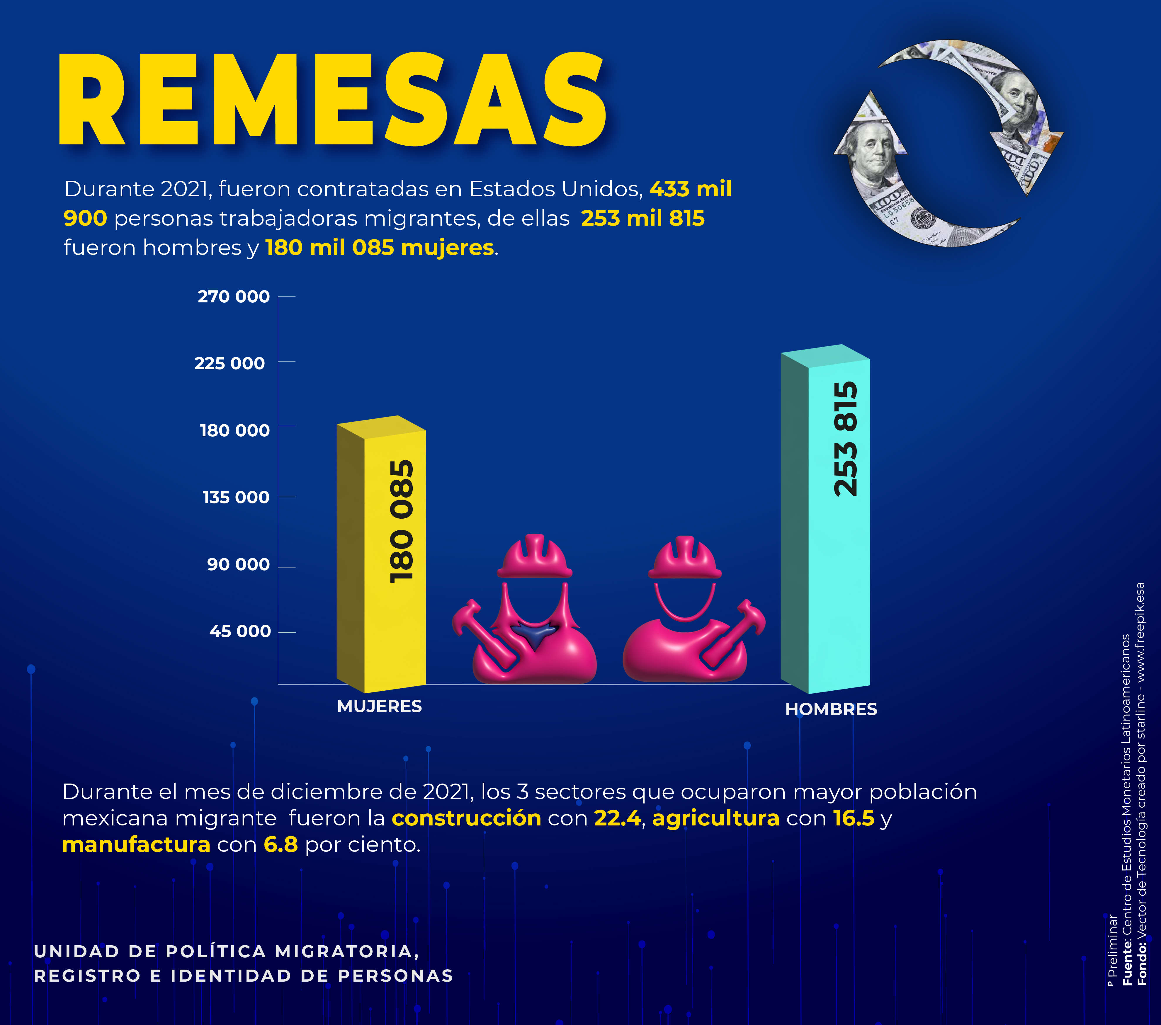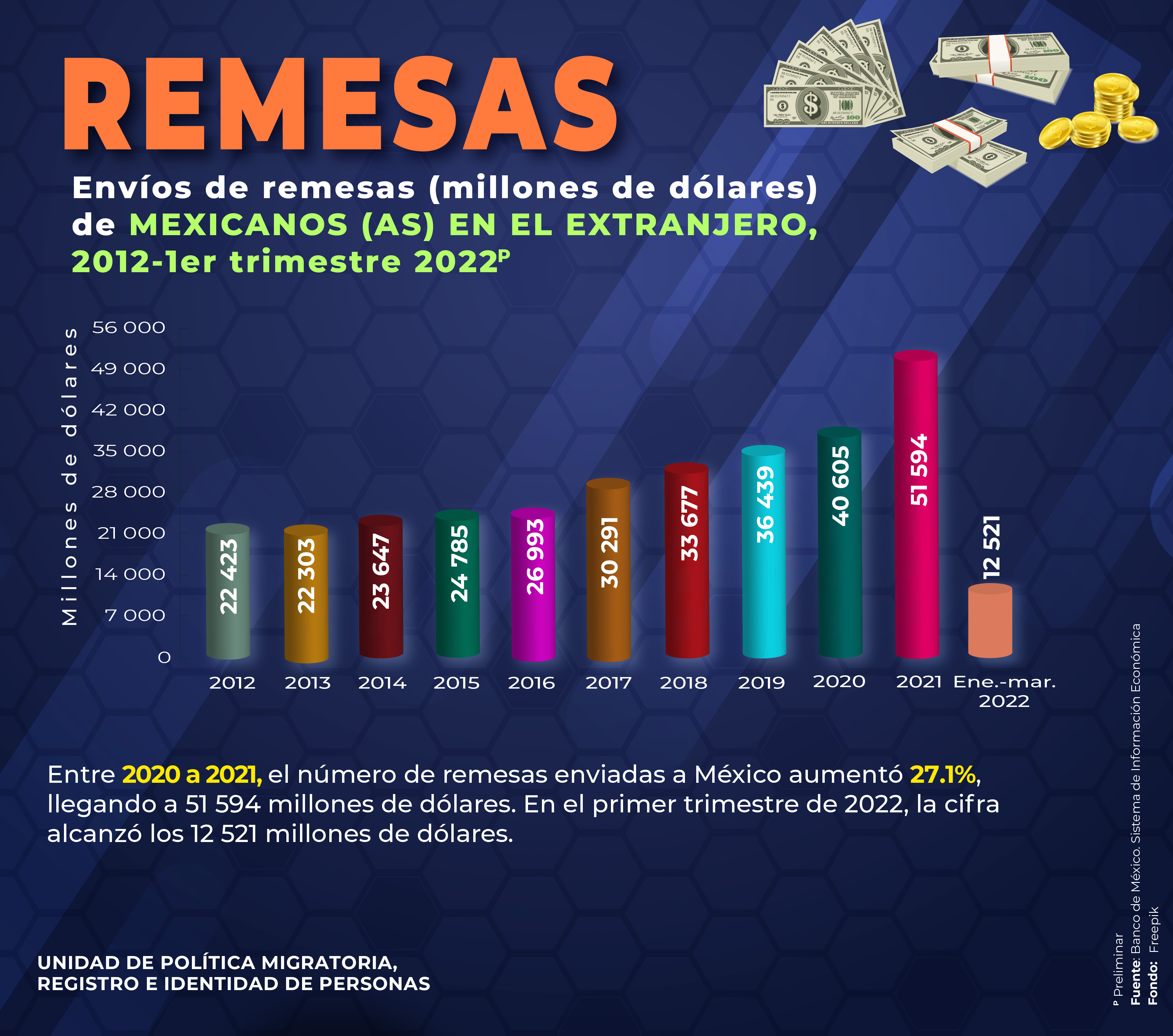 - Envíos de remesas (millones de dólares) de Mexicanos(as) en el extranjero, 2021